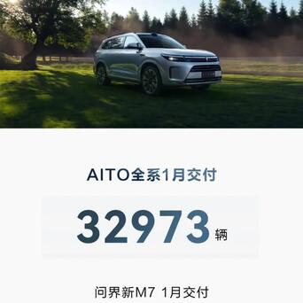 问界1月交付新车32973辆,其中问界新M7交付了31253辆新车,