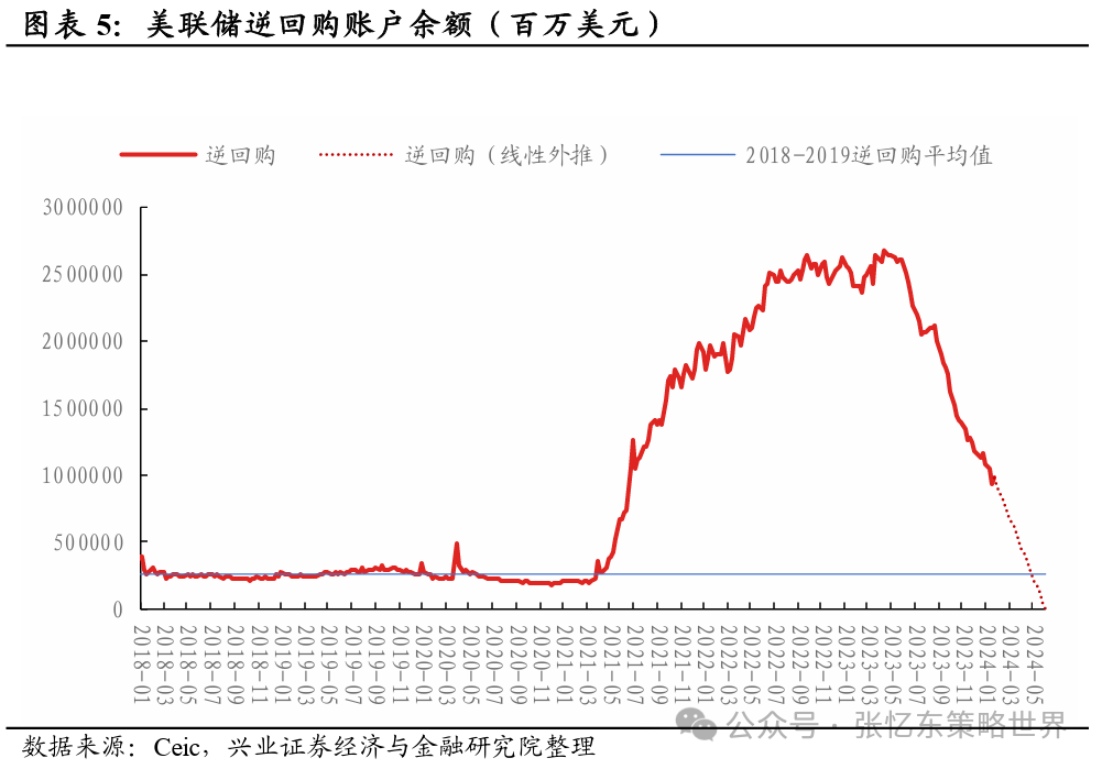 首先,逆回购“蓄水池”正常化之后,联储缩表对流动性的冲击将增大。当银行准备金水平达到联储认为的“充足准备金水平”时,联储将停止缩表。
