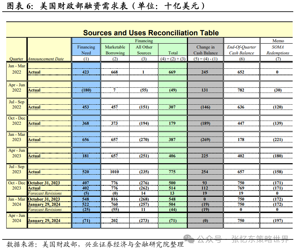 2.1、1月底财政部公布了新的融资计划,下调了2024年第一季度的融资规模,公布的第二季度融资规模较此前三个季度大幅下降。从2023年8月以来的困扰美债的供给压力后续有望明显缓解。